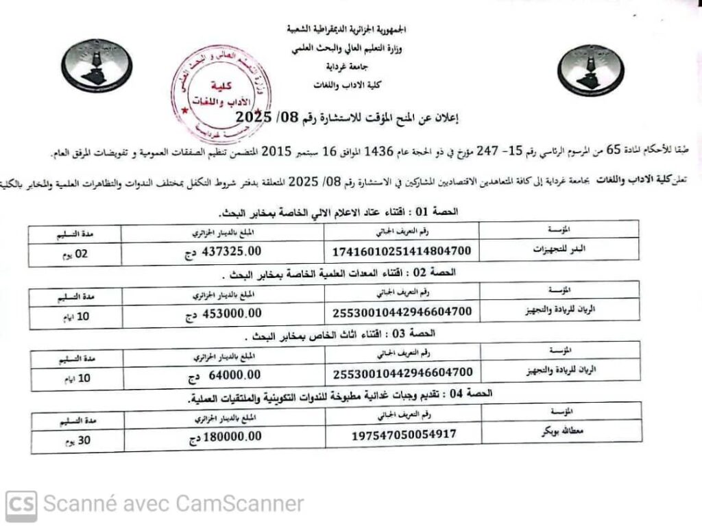 إعلان عن المنح المؤقت لإستشارة رقم 2025/08 17 أكتوبر 2025 إعلان استشارة 2 زيارة شاركها Facebook Twitter LinkedIn