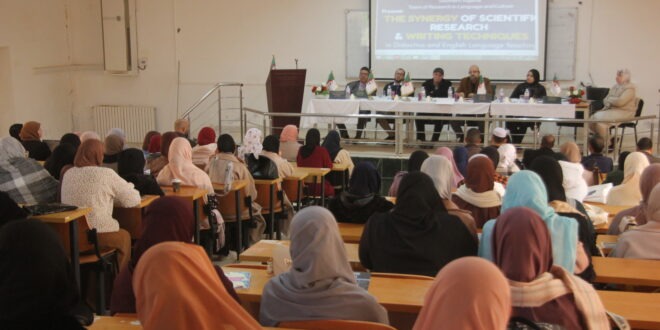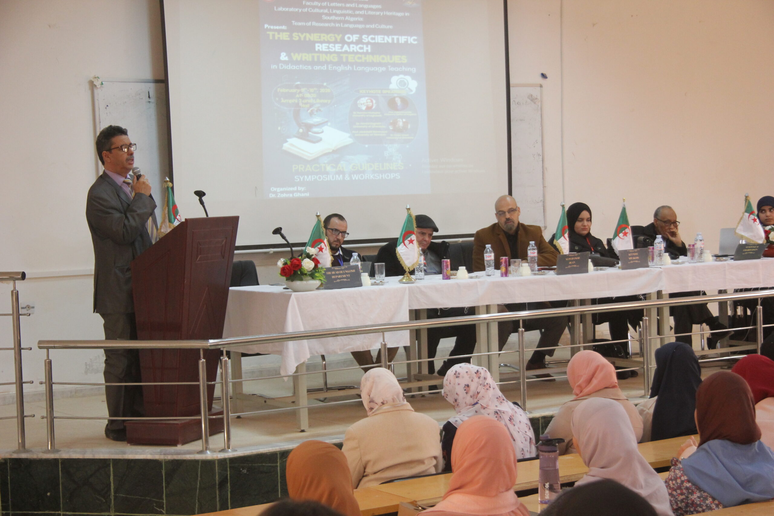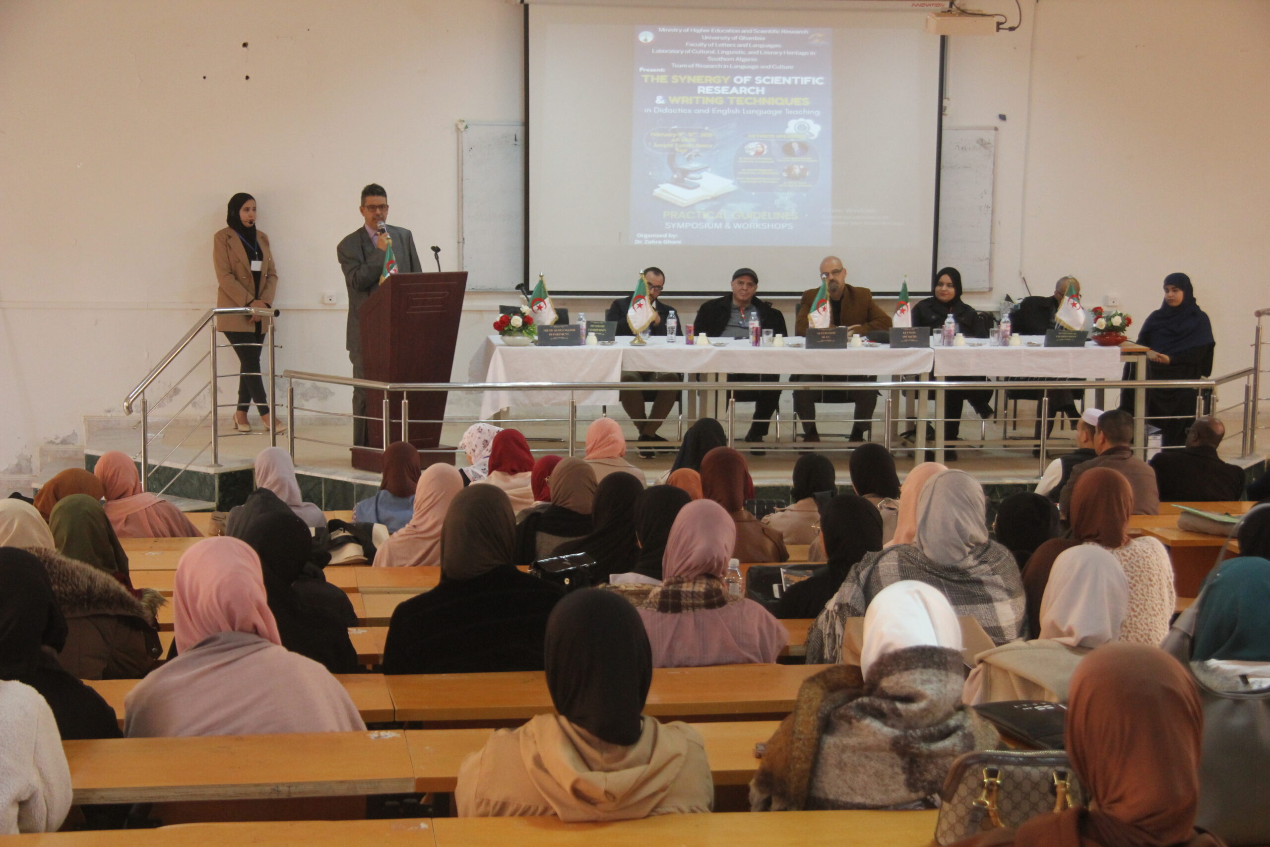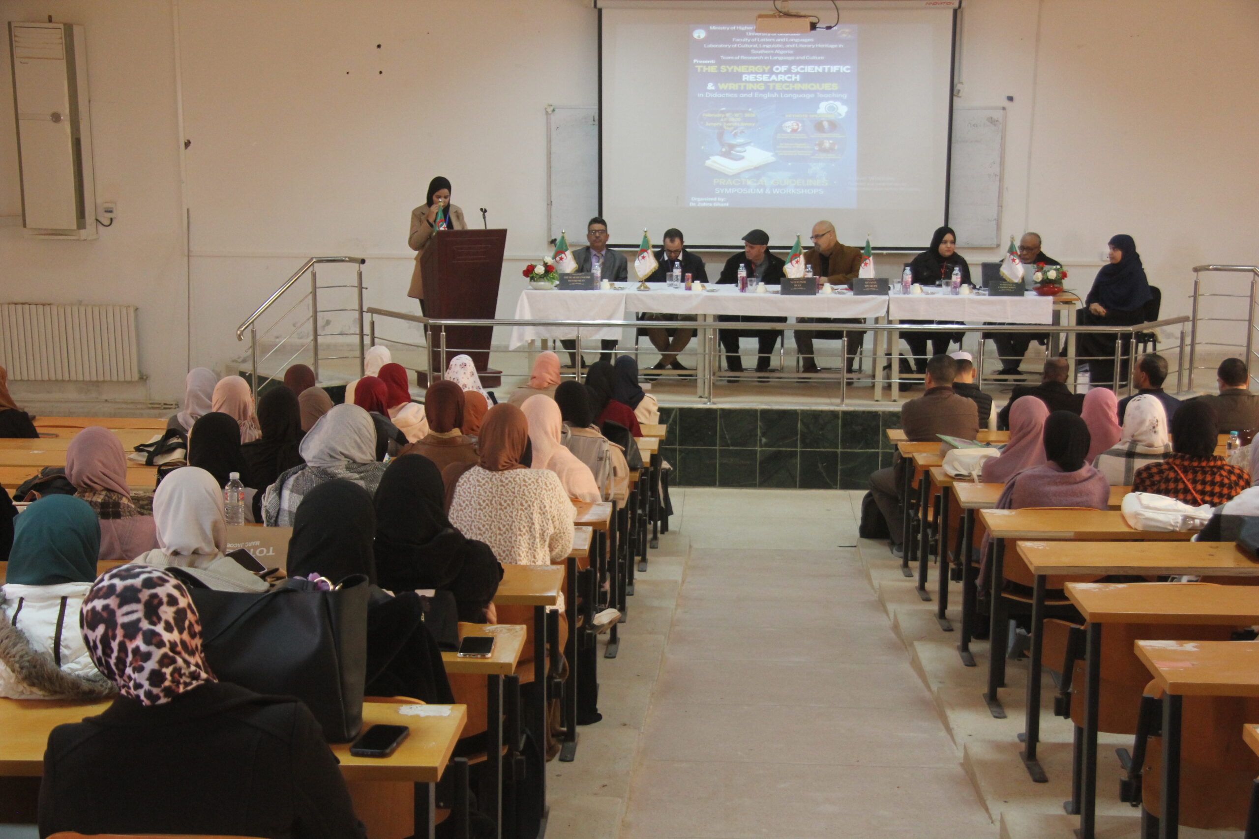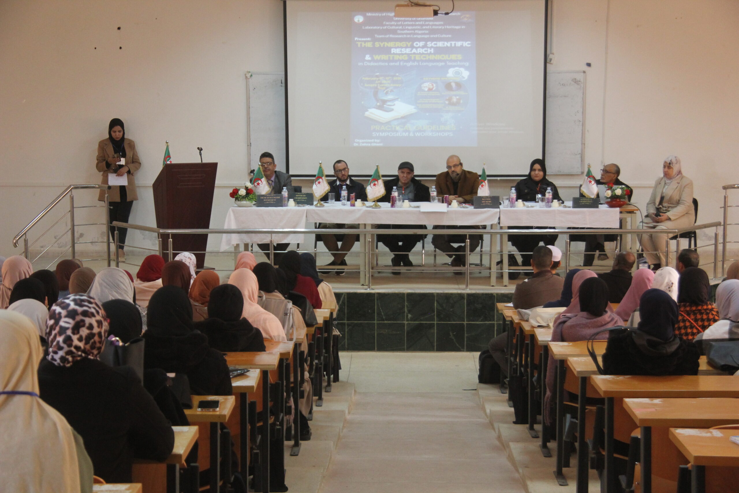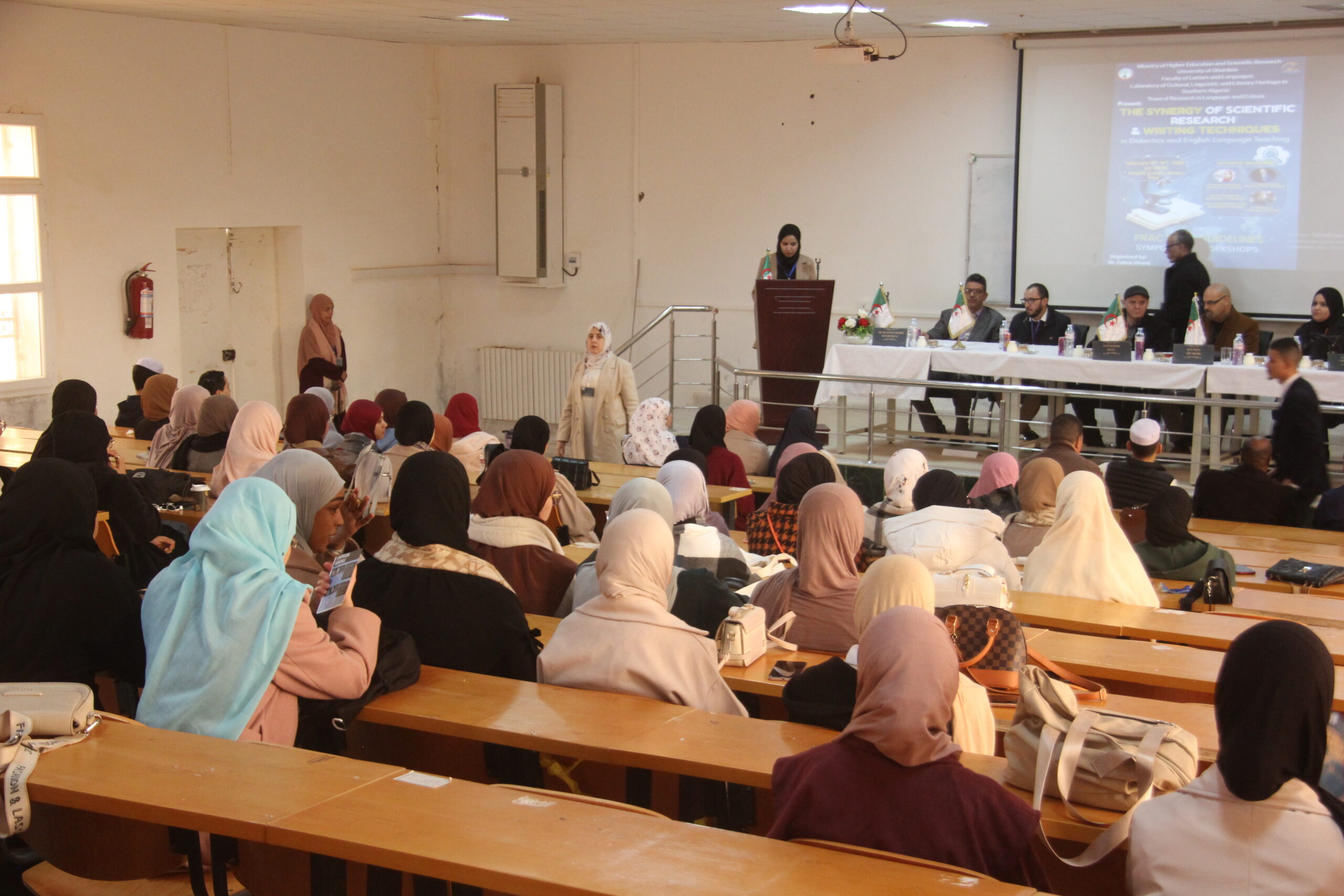 بتاريخ 09 فيفري 2026 نظم مخبر التراث اللغوي والأدبي والثقافي بقسم اللغة الإنجليزية ندوة حول البحث العلمي لطلاب الماستر والدكتوراه، وذلك بقاعة المحاضرات لكلية الآداب واللغات.