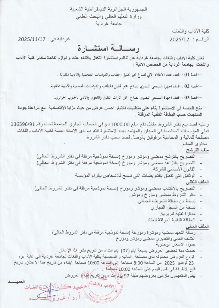إعلان عن الإستشارة رقم 2025/12 19 نوفمبر 2025 إعلانات, مقالات مميزة 760 زيارة شاركها Facebook Twitter LinkedIn