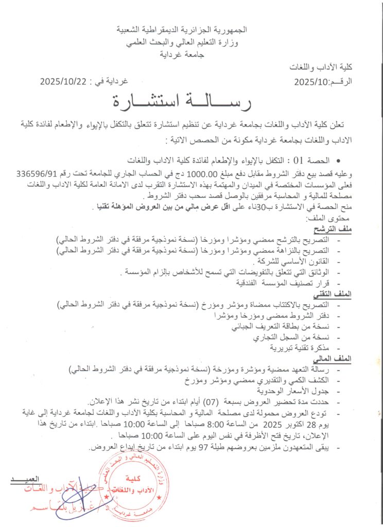 إعلان عن المنح المؤقت للإستشارة رقم 2025/10 22 أكتوبر 2025 إعلانات, مقالات مميزة 662 زيارة شاركها Facebook Twitter LinkedIn