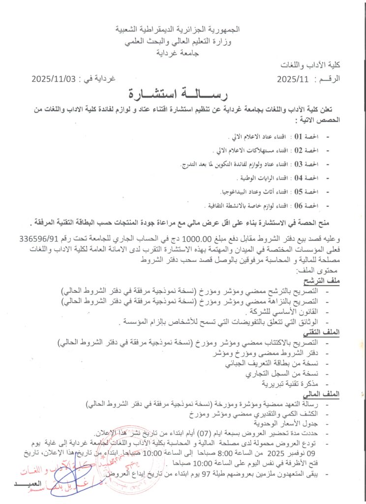 إعلان عن المنح المؤقت للإستشارة رقم 2025/11 5 نوفمبر 2025 إعلانات, مقالات مميزة 708 زيارة شاركها Facebook Twitter LinkedIn
