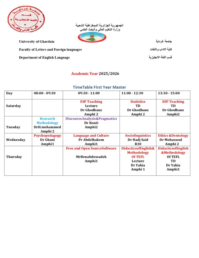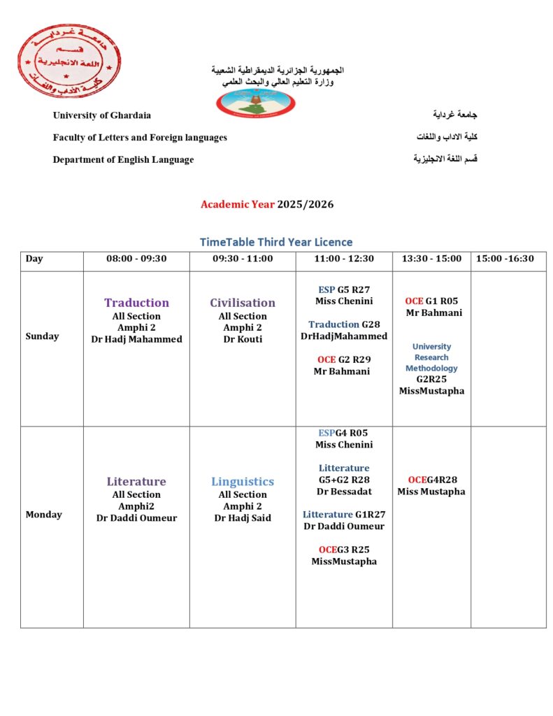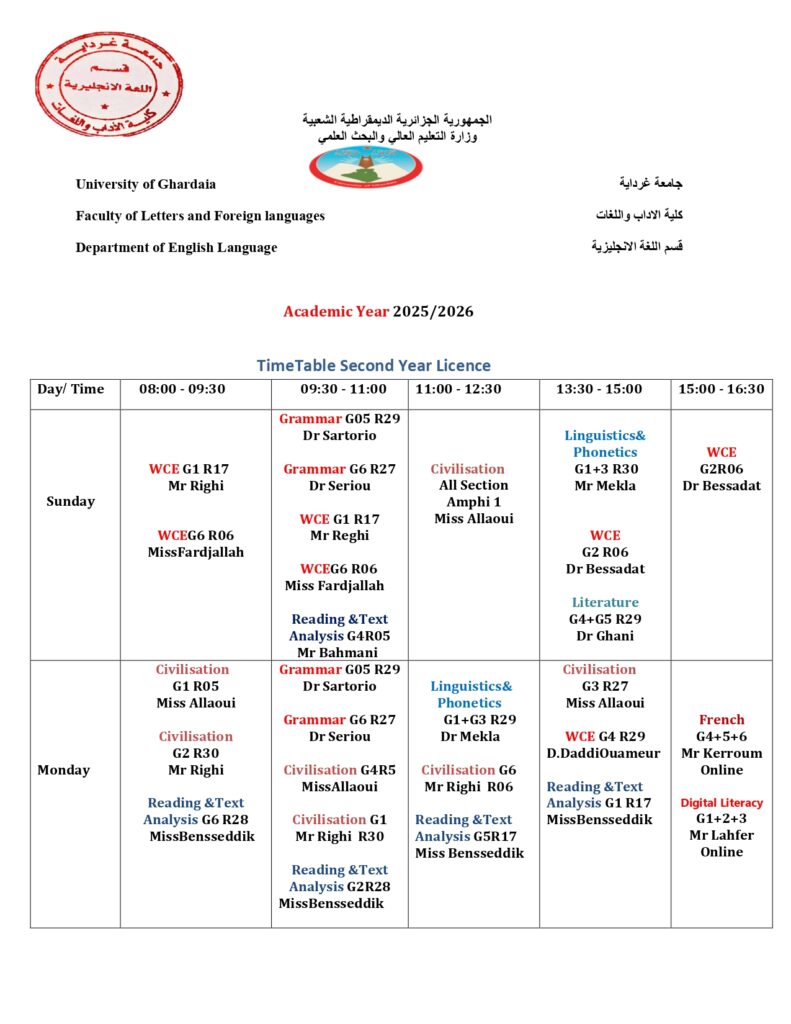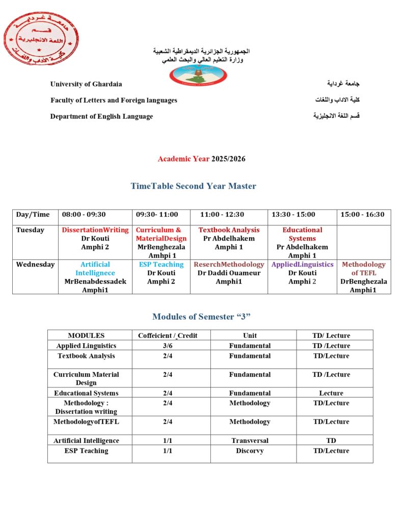 البرنامج الأسبوعي لقسم الإنجليزية 21 سبتمبر 2025 الجداول الزمنية 214 زيارة شاركها Facebook Twitter LinkedIn