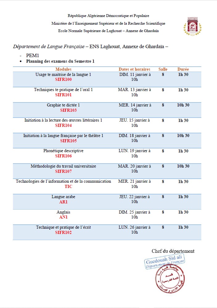 رزنامة امتحانات الدورة العادية للسداسي الأول – المدرسة العليا – قسم اللغة الفرنسية 24 ديسمبر 2025 إعلانات الطلبة, رزنامة الإمتحانات 18 زيارة شاركها Facebook Twitter LinkedIn